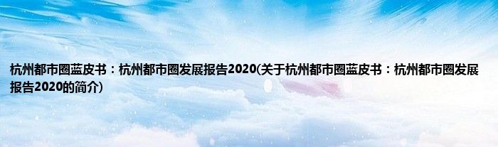 大家好,杭州都市圈蓝皮书:杭州都市圈发展报告2020,关于杭州都市圈蓝皮书:杭州都市圈发展报告2020的简介很多人还不知道,现在让我们一起来看看吧!