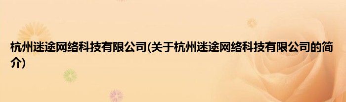 本文关于杭州迷途网络科技有限公司的简介就讲解完毕,希望对大家有所帮助。