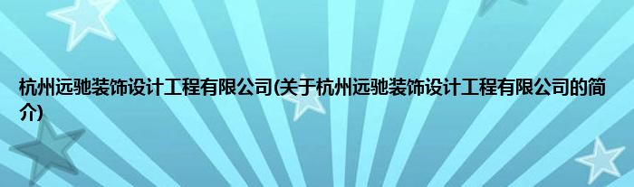 本文关于杭州远驰装饰设计工程有限公司的简介就讲解完毕,希望对大家有所帮助。