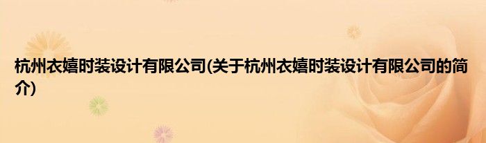 本文关于杭州衣嬉时装设计有限公司的简介就讲解完毕,希望对大家有所帮助。