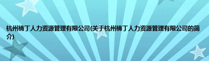 本文关于杭州楠丁人力资源管理有限公司的简介就讲解完毕,希望对大家有所帮助。
