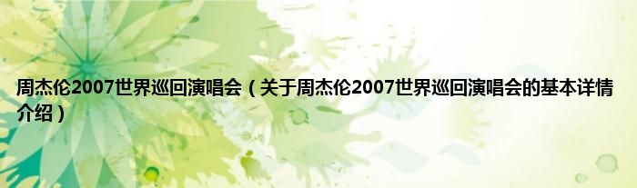 本文关于周杰伦2007世界巡回演唱会的基本详情介绍就讲解完毕,希望对大家有所帮助。