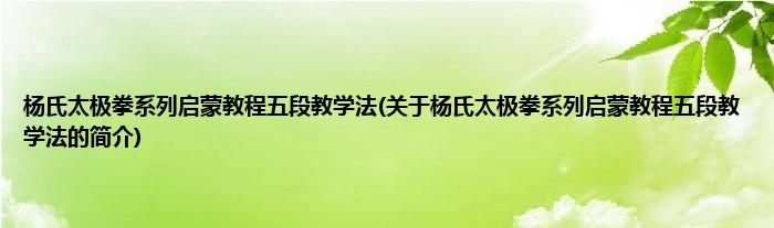 本文关于杨氏太极拳系列启蒙教程五段教学法的简介就讲解完毕,希望对大家有所帮助。