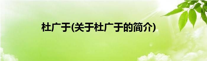 本文关于杜广于的简介就讲解完毕,希望对大家有所帮助。