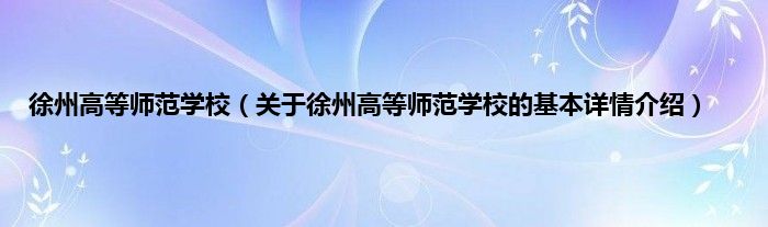本文关于徐州高等师范学校的基本详情介绍就讲解完毕,希望对大家有所帮助。