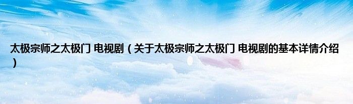 本文关于太极宗师之太极门 电视剧的基本详情介绍就讲解完毕,希望对大家有所帮助。