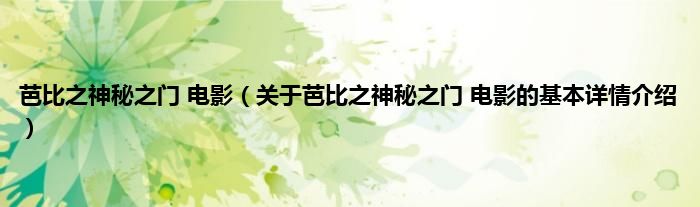 本文关于芭比之神秘之门 电影的基本详情介绍就讲解完毕,希望对大家有所帮助。
