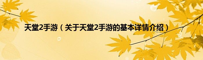 本文关于天堂2手游的基本详情介绍就讲解完毕,希望对大家有所帮助。