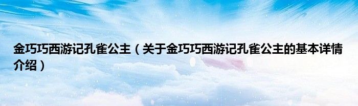 本文关于金巧巧西游记孔雀公主的基本详情介绍就讲解完毕,希望对大家有所帮助。