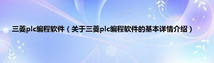 本文关于三菱plc编程软件的基本详情介绍就讲解完毕,希望对大家有所帮助。