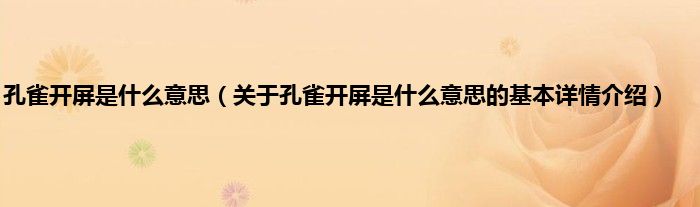 本文关于孔雀开屏是什么意思的基本详情介绍就讲解完毕,希望对大家有所帮助。