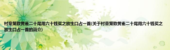 本文关于村童笼致黄雀二十尾用六十钱买之放生口占一首的简介就讲解完毕,希望对大家有所帮助。