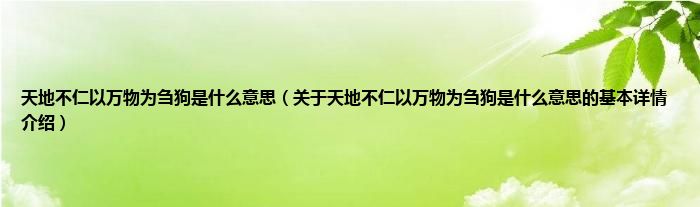 本文关于天地不仁以万物为刍狗是什么意思的基本详情介绍就讲解完毕,希望对大家有所帮助。