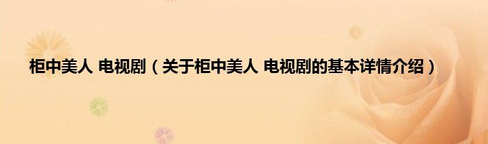 柜中美人 电视剧(关于柜中美人 电视剧的基本详情介绍)
