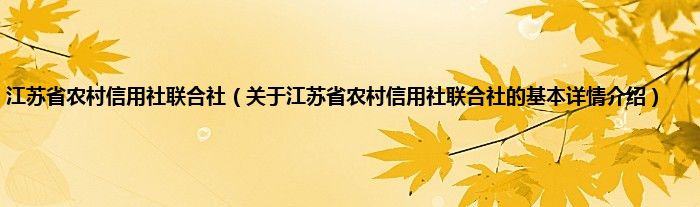 本文关于江苏省农村信用社联合社的基本详情介绍就讲解完毕,希望对大家有所帮助。