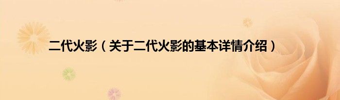 本文关于二代火影的基本详情介绍就讲解完毕,希望对大家有所帮助。