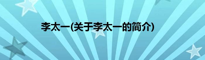 大家好,李太一,关于李太一的简介很多人还不知道,现在让我们一起来看看吧!