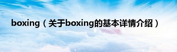 本文关于boxing的基本详情介绍就讲解完毕,希望对大家有所帮助。