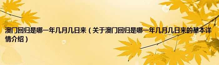 本文关于澳门回归是哪一年几月几日来的基本详情介绍就讲解完毕,希望对大家有所帮助。