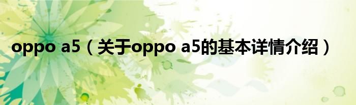 本文关于oppo a5的基本详情介绍就讲解完毕,希望对大家有所帮助。