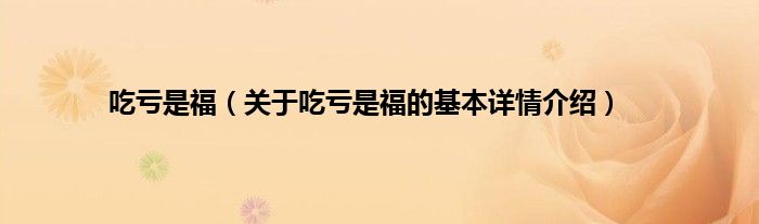 本文关于吃亏是福的基本详情介绍就讲解完毕,希望对大家有所帮助。