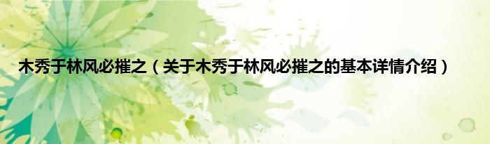 木秀于林风必摧之(关于木秀于林风必摧之的基本详情介绍)