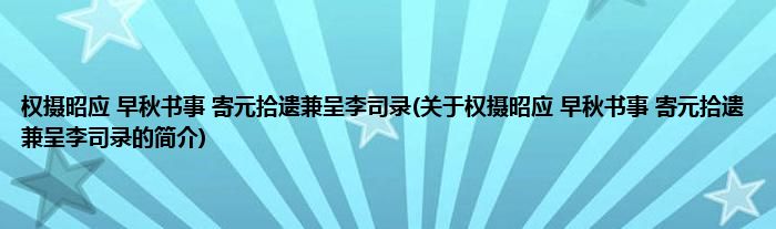 大家好,权摄昭应,早秋书事,寄元拾遗兼呈李司录,关于权摄昭应,早秋书事,寄元拾遗兼呈李司录的简介很多人还不知道,现在让我们一起来看看吧!