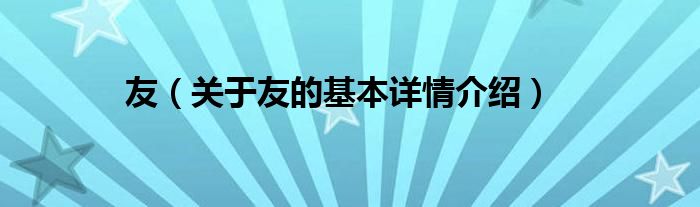 本文关于友的基本详情介绍就讲解完毕,希望对大家有所帮助。