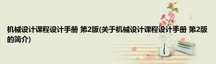 本文关于机械设计课程设计手册 第2版的简介就讲解完毕,希望对大家有所帮助。