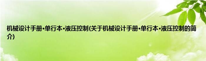 本文关于机械设计手册·单行本·液压控制的简介就讲解完毕,希望对大家有所帮助。