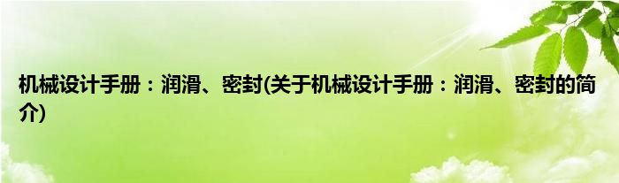 大家好,机械设计手册:润滑、密封,关于机械设计手册:润滑、密封的简介很多人还不知道,现在让我们一起来看看吧!