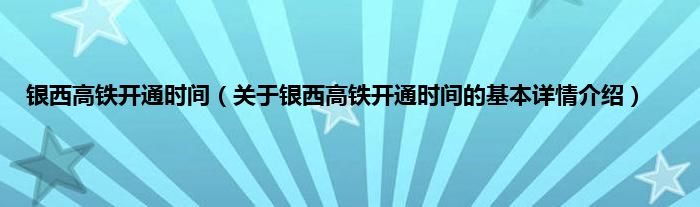 本文关于银西高铁开通时间的基本详情介绍就讲解完毕,希望对大家有所帮助。