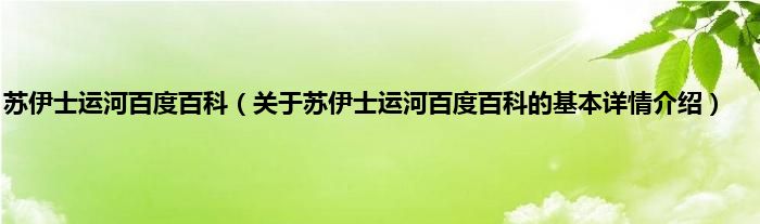 本文关于苏伊士运河百度百科的基本详情介绍就讲解完毕,希望对大家有所帮助。