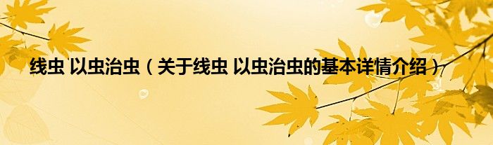 本文关于线虫 以虫治虫的基本详情介绍就讲解完毕,希望对大家有所帮助。