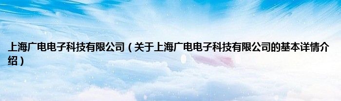本文关于上海广电电子科技有限公司的基本详情介绍就讲解完毕,希望对大家有所帮助。
