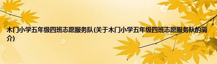 大家好,木门小学五年级四班志愿服务队,关于木门小学五年级四班志愿服务队的简介很多人还不知道,现在让我们一起来看看吧!