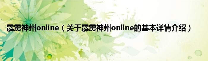 本文关于霹雳神州online的基本详情介绍就讲解完毕,希望对大家有所帮助。