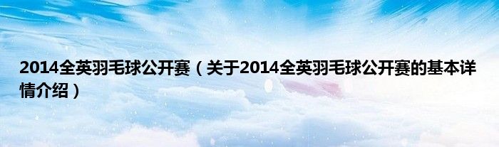 本文关于2014全英羽毛球公开赛的基本详情介绍就讲解完毕,希望对大家有所帮助。