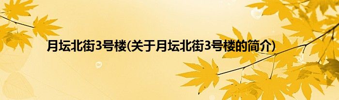 本文关于月坛北街3号楼的简介就讲解完毕,希望对大家有所帮助。