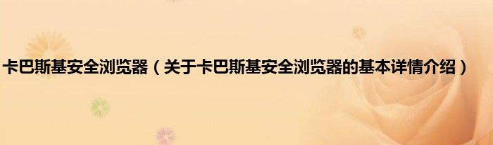 本文关于卡巴斯基安全浏览器的基本详情介绍就讲解完毕,希望对大家有所帮助。
