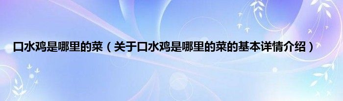 本文关于口水鸡是哪里的菜的基本详情介绍就讲解完毕,希望对大家有所帮助。