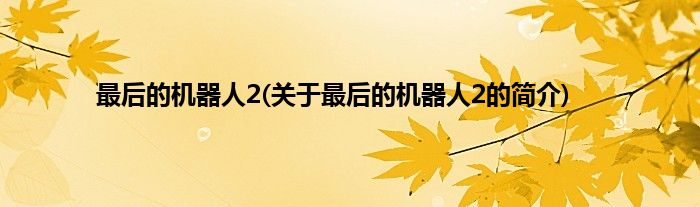 本文关于最后的机器人2的简介就讲解完毕,希望对大家有所帮助。
