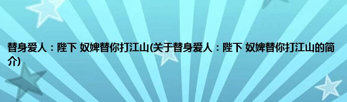 大家好,替身爱人:陛下,奴婢替你打江山,关于替身爱人:陛下,奴婢替你打江山的简介很多人还不知道,现在让我们一起来看看吧!