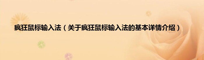 本文关于疯狂鼠标输入法的基本详情介绍就讲解完毕,希望对大家有所帮助。