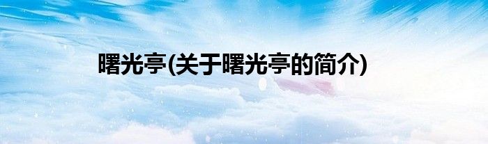 大家好,曙光亭,关于曙光亭的简介很多人还不知道,现在让我们一起来看看吧!