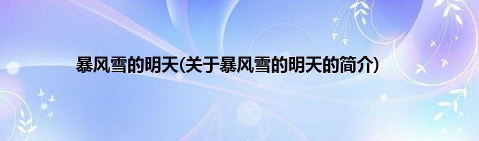 本文关于暴风雪的明天的简介就讲解完毕,希望对大家有所帮助。