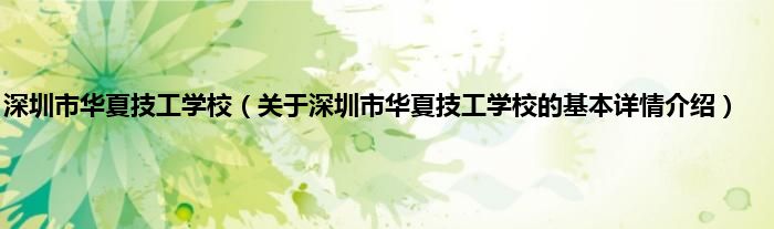 本文关于深圳市华夏技工学校的基本详情介绍就讲解完毕,希望对大家有所帮助。