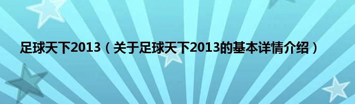 本文关于足球天下2013的基本详情介绍就讲解完毕,希望对大家有所帮助。