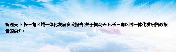 本文关于智观天下:长三角区域一体化发展资政报告的简介就讲解完毕,希望对大家有所帮助。