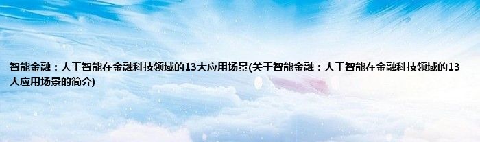 大家好,智能金融:人工智能在金融科技领域的13大应用场景,关于智能金融:人工智能在金融科技领域的13大应用场景的简介很多人还不知道,现在让我们一起来看看吧!